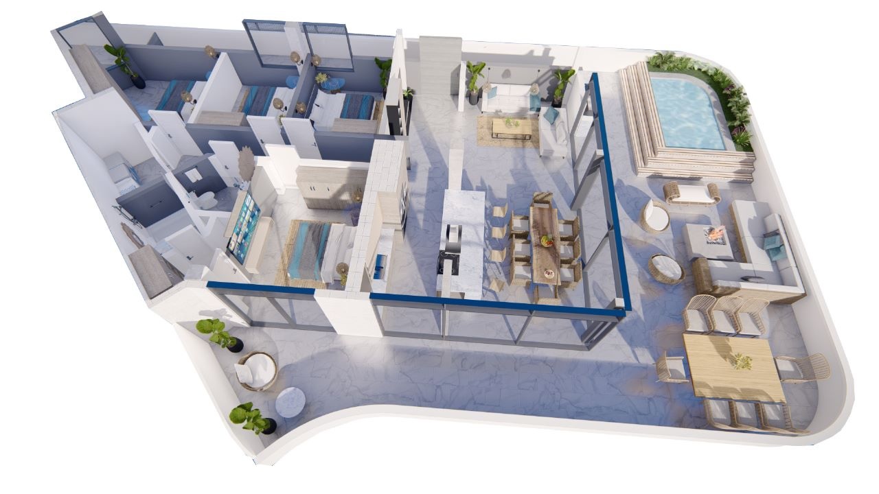 The approved design responds naturally to the site. From the road, this architectural masterpiece presents a confident but restrained presence. From the ocean side, it opens toward the horizon, with terraces and shared spaces oriented to light, views, and airflow. The scale is appropriate for La Punta— substantial but not out of context—and the concept aligns well with both residential and hospitality-adjacent uses.