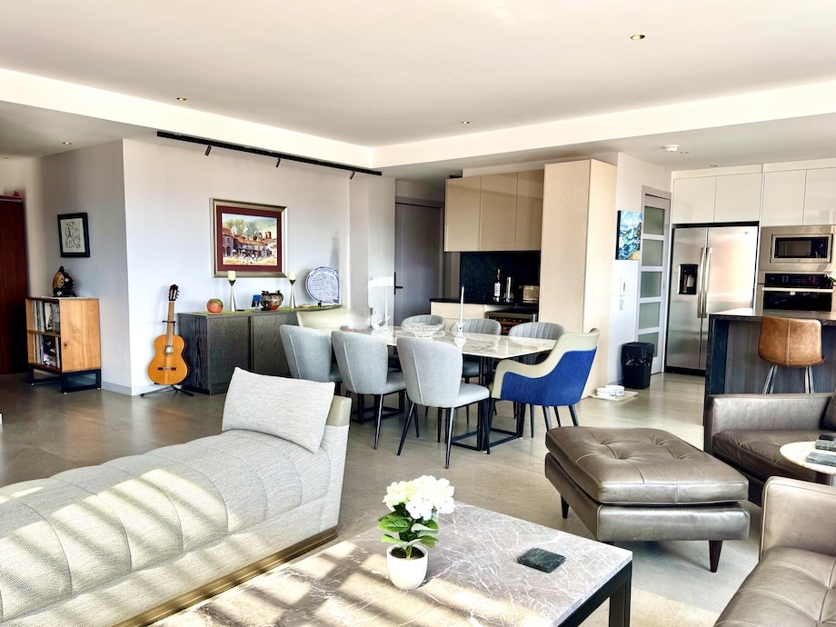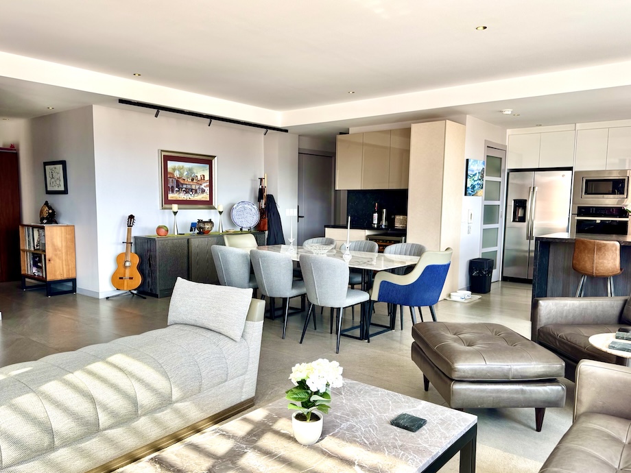 Located in one of the city’s most desirable neighborhoods, favored by both expats and locals for its walkability, river access, and proximity to restaurants and cafés, the apartment spans 208 sq. meters (2,246 sq. ft), with 156 sq. meters (1,680 sq. ft) of interior space and an additional 52 sq. meters (566 sq. ft) of covered terraces that wrap gracefully around two sides of the home.