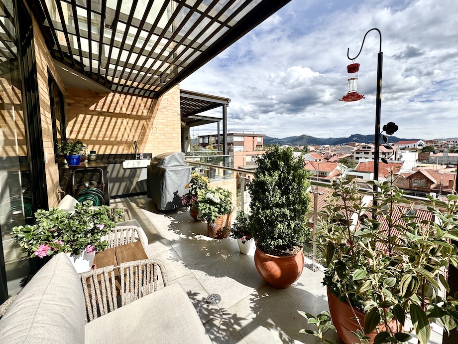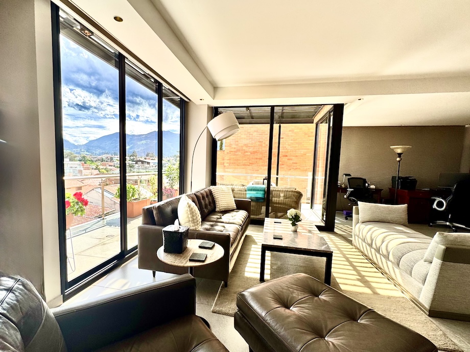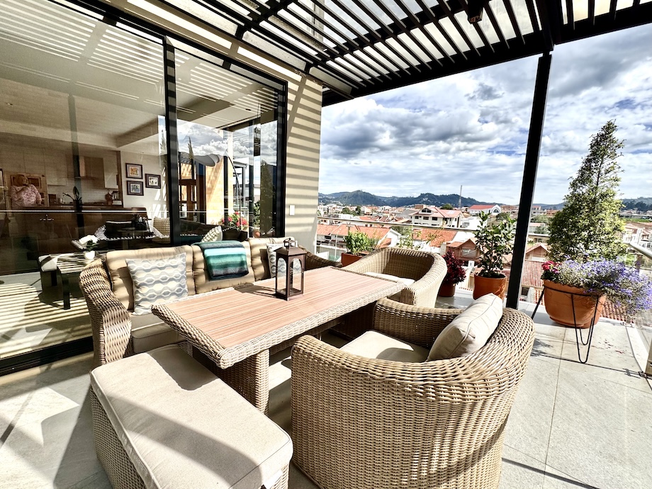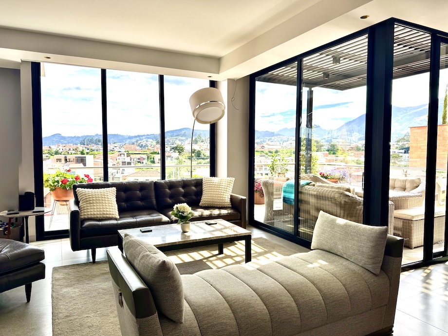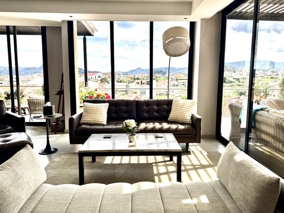 This beautifully upgraded, light-filled 2-bedroom, 2.5-bath condo in Puertas del Sol with an expansive 2-sided terrace and fabulous mountain and city views, offers something rarely found in Cuenca — a truly high-design home where every detail has been thoughtfully considered and executed.