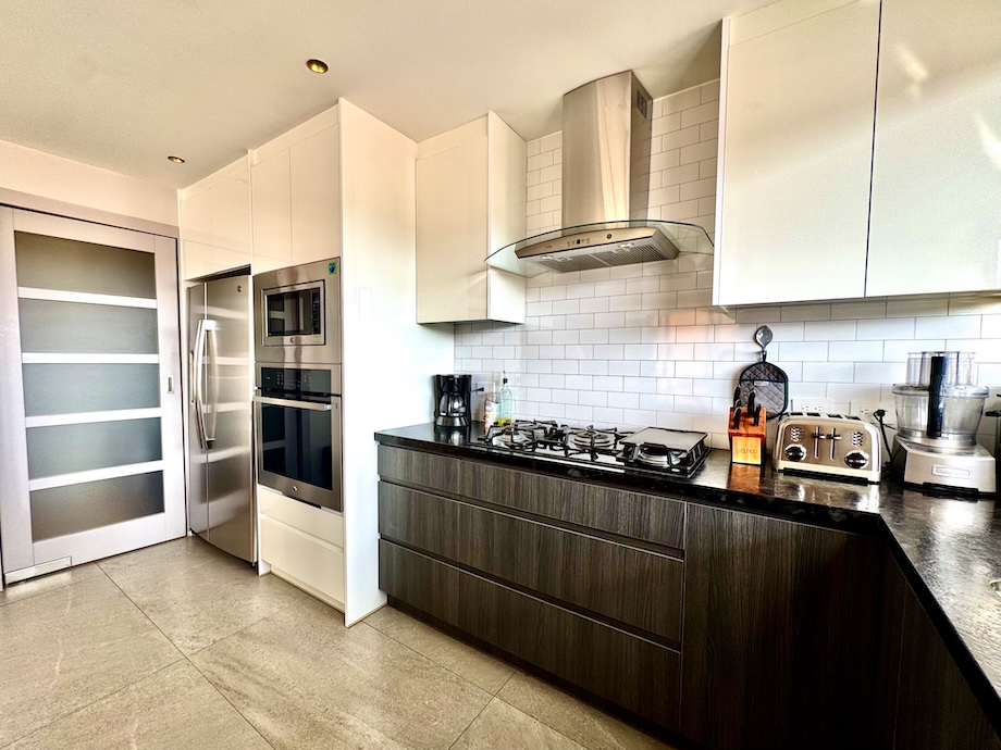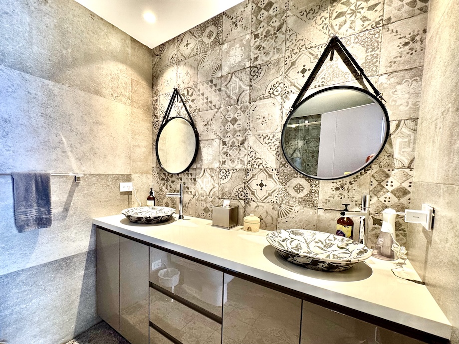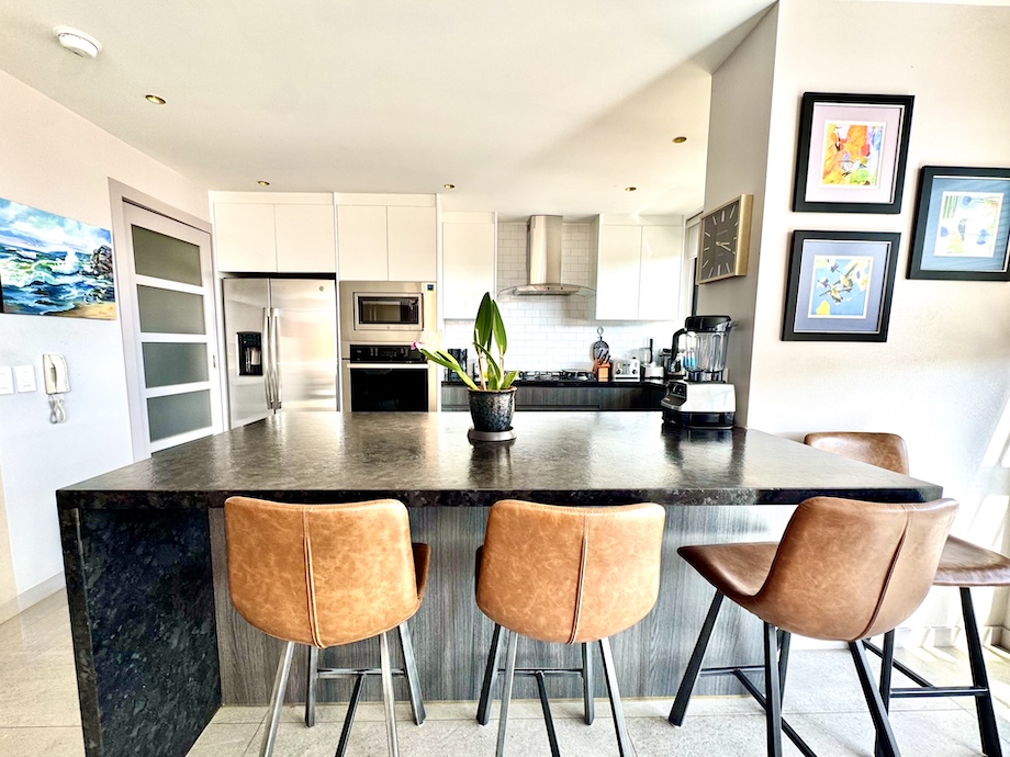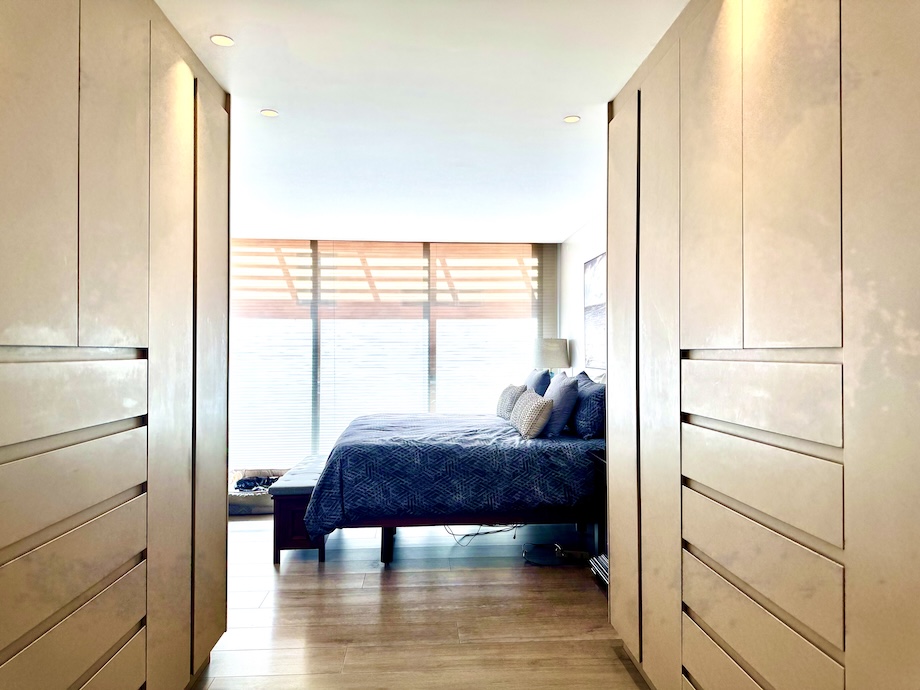 The home offers two spacious bedrooms, each with its own ensuite bath and direct connection to the terraces, allowing light and fresh air to be part of the daily experience. The primary suite is a true retreat, with additional custom closet space and a beautifully appointed bathroom featuring double Kohler Artist Series sinks, a Toto washlet bidet, and an oversized jacuzzi tub — a quiet place to unwind at the end of the day.