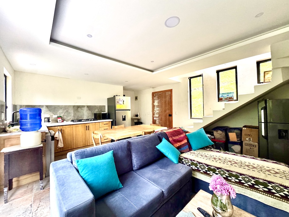 At the center of this countryside haven is a rustic, two-story home that is about 98% complete. It’s perfectly livable now, though still awaiting a few finishing touches — the stairway and kitchen countertop — which allows the new owner to make it their own. Designed to embrace the surroundings, the house includes a master suite with a 25-square-meter terrace above the river and a guest bedroom and living area that open onto a 30-square-meter deck. In total, the construction is 130 square meters -- 1,299 sq. ft.-- with 70 square meters of interior space, plus a covered outdoor laundry area and a 16-square-meter bodega for practical storage.