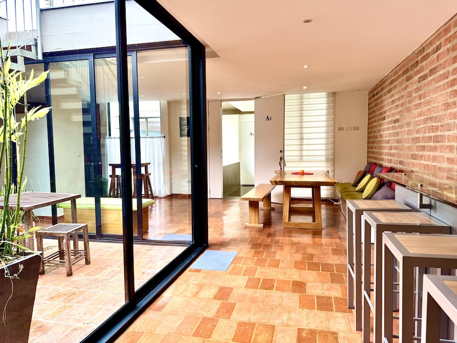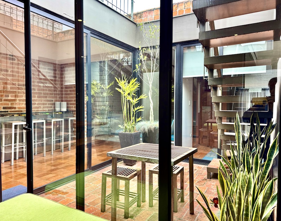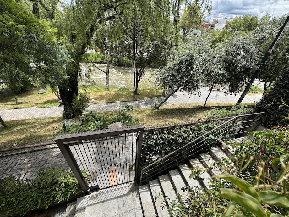 Despite being in the center of it all, once the building's front door is closed, you are immersed in a quiet oasis, with flowers and foliage, beautiful plants, and an ancient pecan (Nogal) tree that was saved during the construction of this award-winning building. River access is easy, with the same key as the front Calle Larga door, and from there you are transported directly onto the river walking and bike paths, and located just minutes from a bridge to the "new Cuenca"