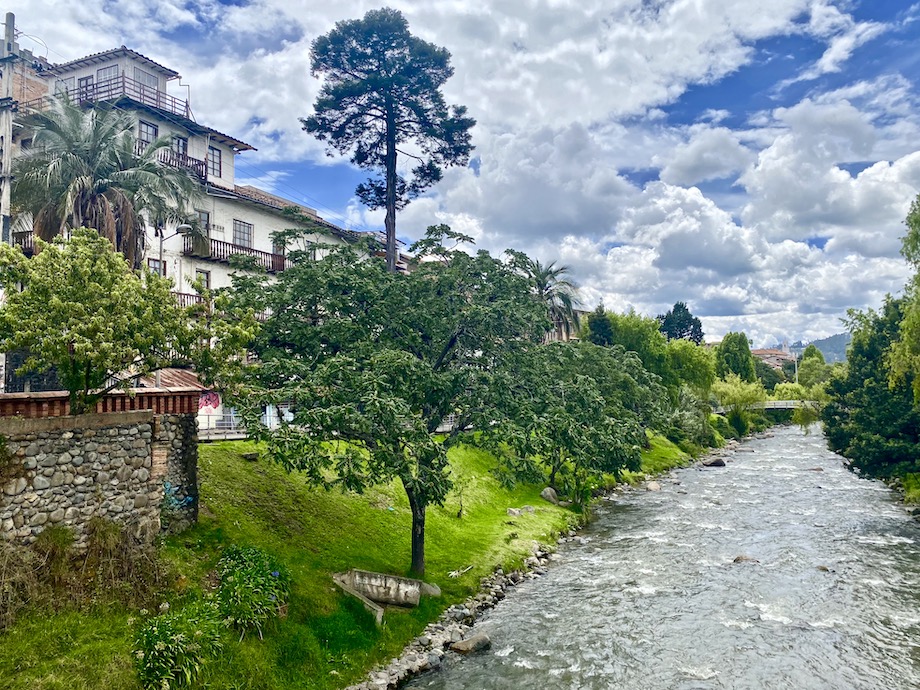 Located with two entrances, on both Calle Large and on the riverbanks of the Tomebamba, you are surrounded by some of Cuenca's best restaurants, stores, cafes, music venues, and a colorful Mercado -- where fresh fruits and vegetables are available, for next to nothing, year-round.