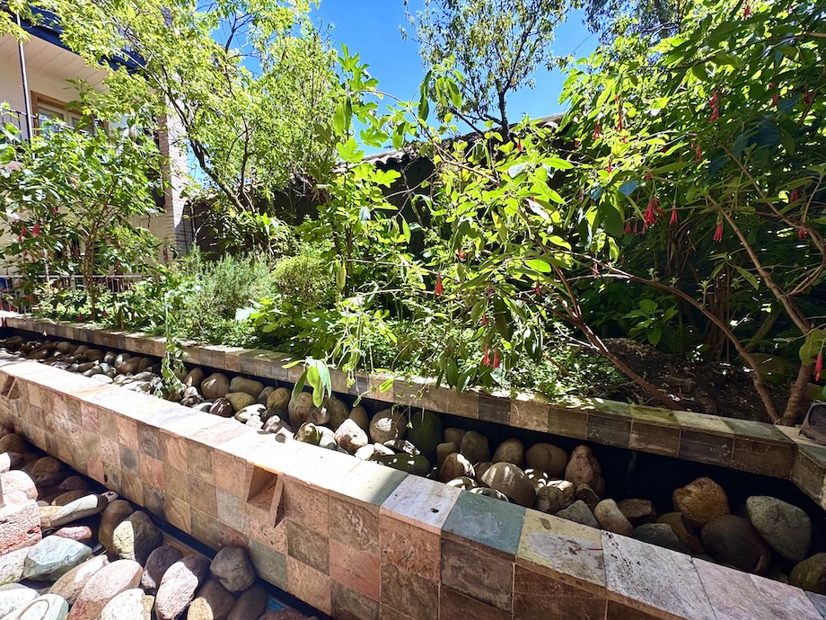 Located on the first floor, the condo enjoys a unique position within the building, flanked by two interior courtyards filled with greenery. These garden spaces bring in natural light and a sense of tranquility, creating a peaceful retreat right in the center of the city. There is also a huerto — the namesake of the building — which is the original orchard that has been preserved as well as a stunning water feature that is located right in front of the quiet building in the heart of the city