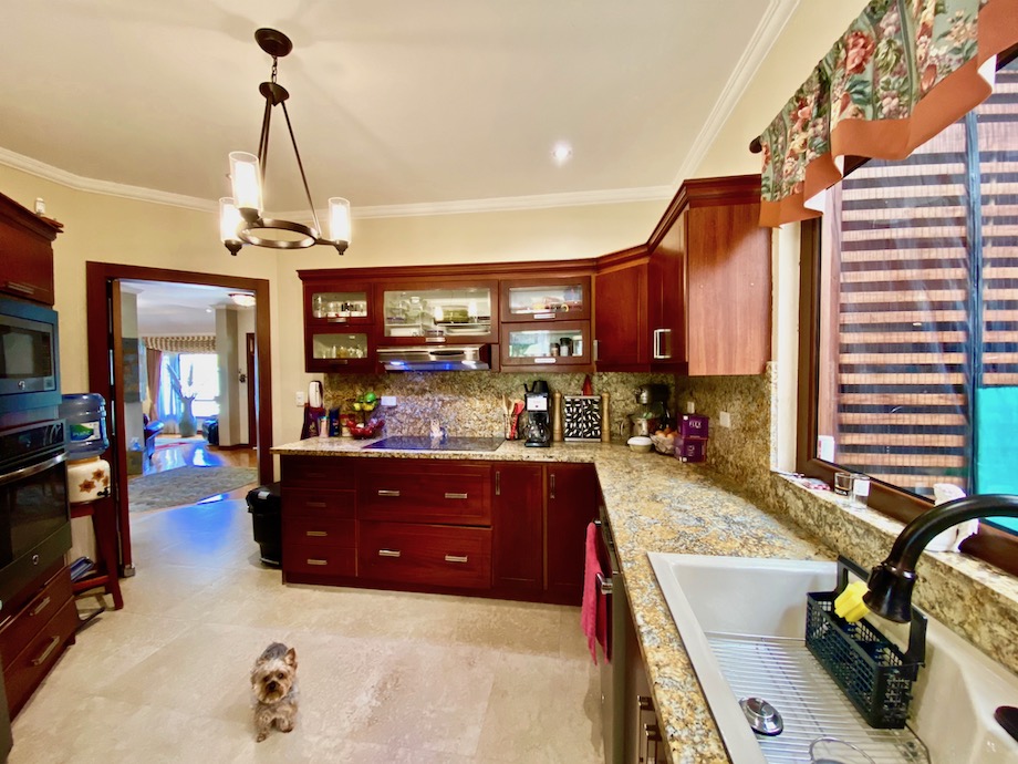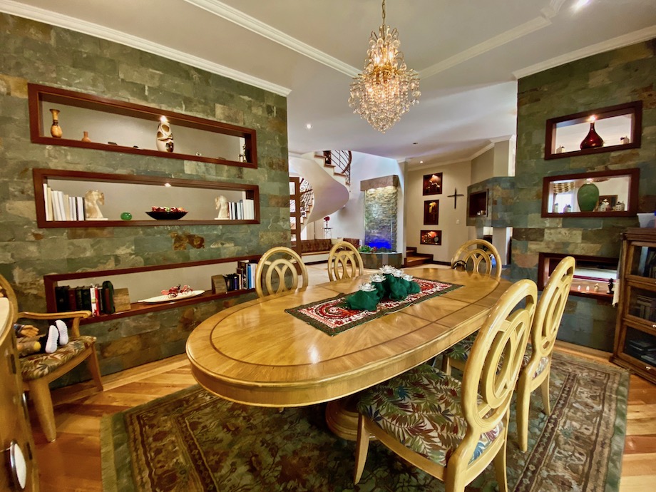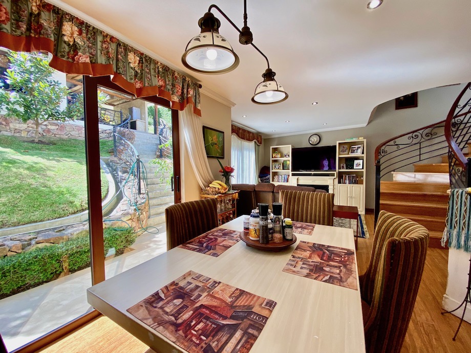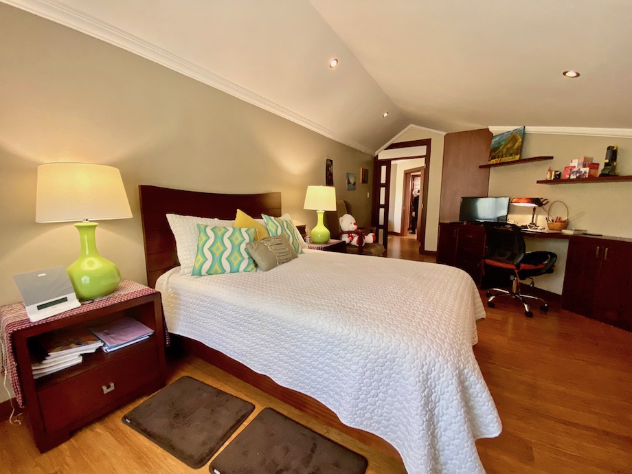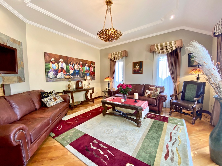 This lavish 4.000 square foot upscale Challuabamba home, just 20 minutes from downtown Cuenca, offers four bedrooms and five baths, an inviting living room, a formal dining room, a kitchen with high-end appliances and granite countertops, a breakfast nook, two TV rooms, an office built for two, an opulent master en suite ground floor bedroom, a wonderful bistro sunroom and three terraces. This enchanting property also boasts a separate outdoor kitchen and entertainment area with spectacular mountain and valley views, plus two gorgeous Magnolia trees, two lemon trees, an avocado tree,and various other plants and flowering shubbery that create a beautiful garden. There is also a bonus room currently being used as an art studio, but perfect for a mother-in-law's suite, guest room, or office.